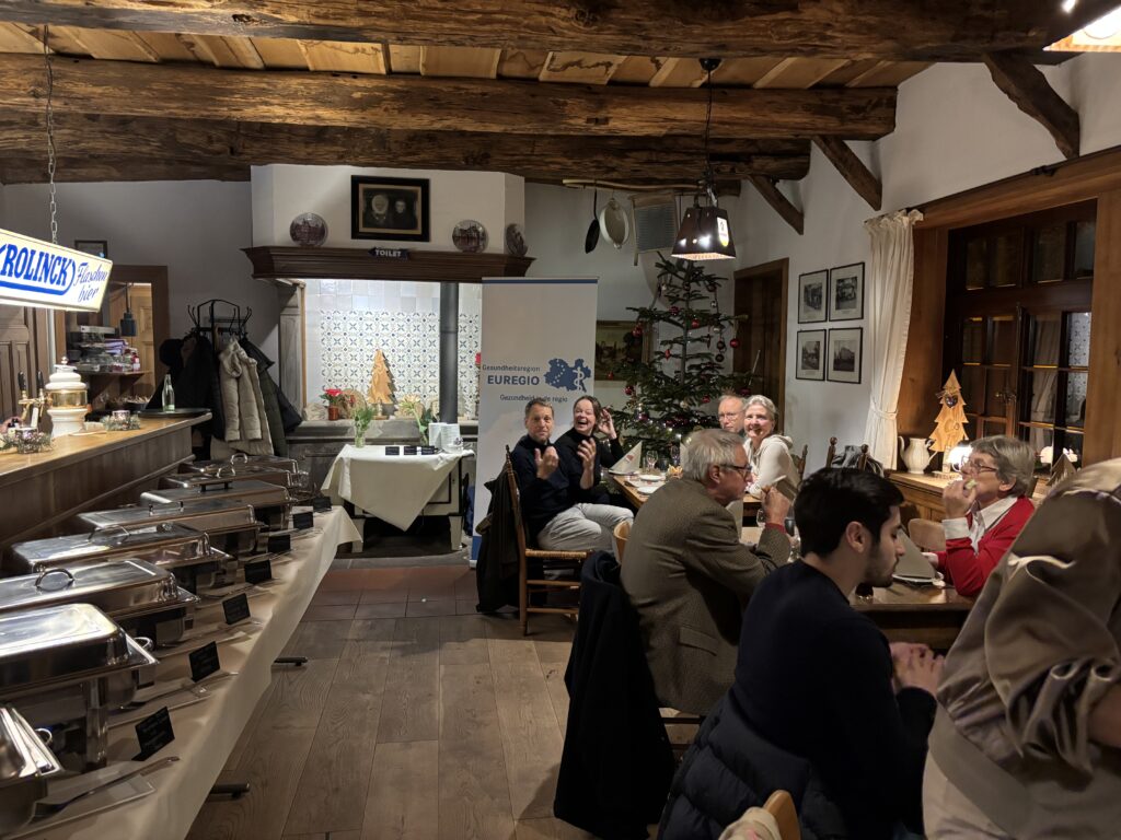 Thomas Nerlinger ergänzte die Beiträge mit einem kurzen Bericht über die aktuellen grenzüberschreitenden gesundheitlichen Beziehungen zwischen Deutschland und den Niederlanden, die künftig mit Unterstützung der Mitglieder und Partner weiter ausgebaut werden sollen. Außerdem berichtete Nerlinger von der letzten Sitzung mit erweitertem Vorstand und Beirat am 28.11. Bonifatius Hospital in Lingen, an der der Beiratsvorsitzende Dr. Andreas Philippi verabschiedet wurde. Auch er verwies noch einmal auf die anstehende mobile Visite zu Beginn des neuen Jahres am 22.01.2026.