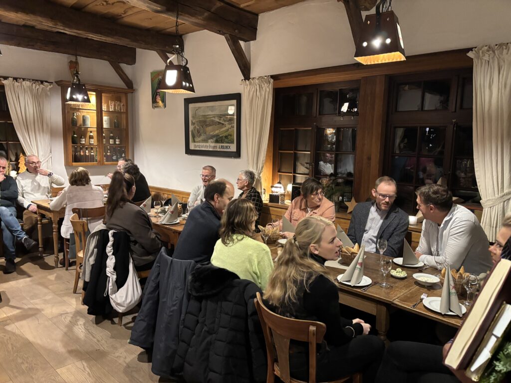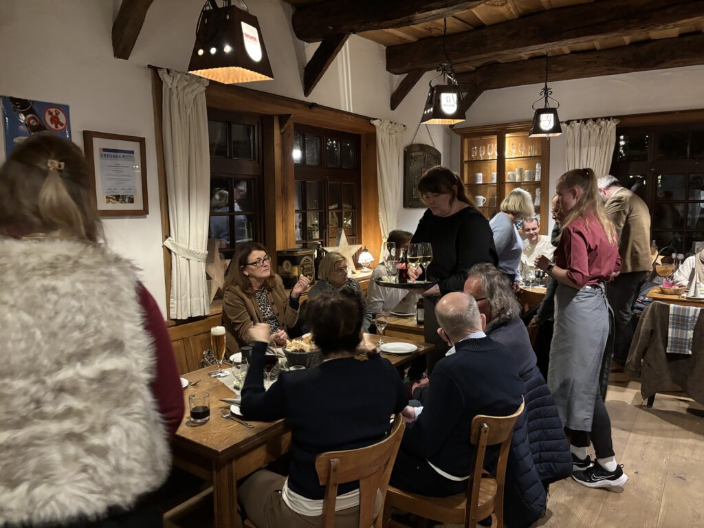 Vor dem gemeinsamen Abendessen wurde eine Weihnachtsgeschichte vorgelesen, die für einen besinnlichen Moment sorgte. Anschließend klang der Abend bei einem weihnachtlichen Buffet im Restaurant Malle Jan in geselliger Runde aus.